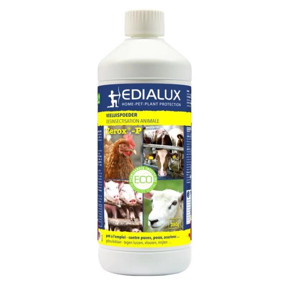 Zerox-P is een gebruiksklaar insecticide poeder op basis van pyrethrum, een plantaardig extract dat gewonnen wordt uit een chrysantensoort.