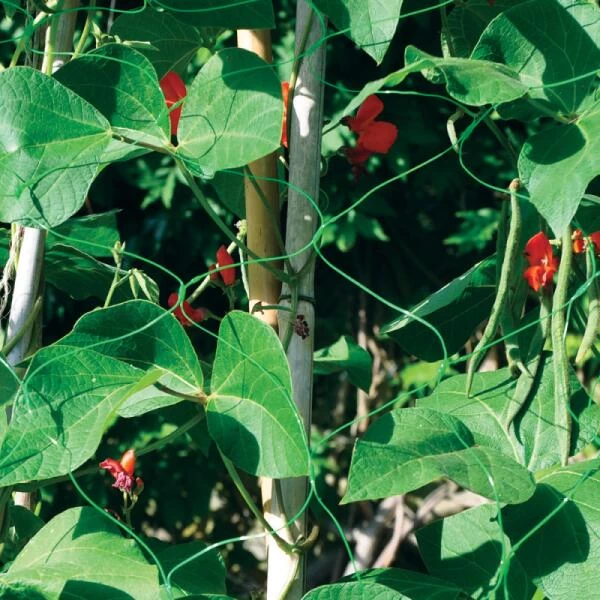 Hoge soorten klimbonen en klimmende erwten hebben een gaas nodig om hun stengels langs te leiden. Dit net zorgt voor een stevige verticale en horizontale groeiconstructie. Het net is zeer stevig en duurzaam en kan verschillende jaren hergebruikt worden.