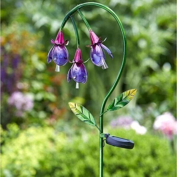 Prachtig sfeerlicht van een Fuchsia als tuinverlichting.