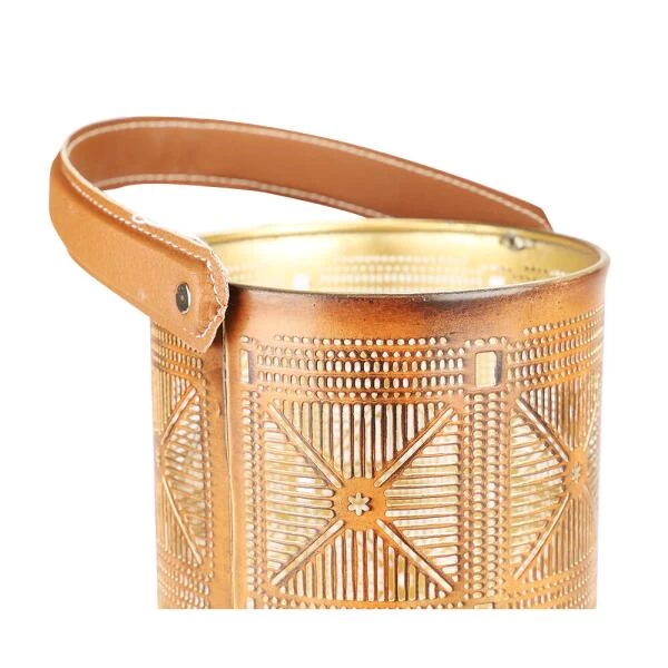 Mooie roest-gouden lantaarn met uitgebreid vierkantmotief.