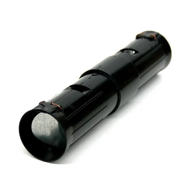 Deze mollenval werkt door de mol naar binnen te laten in de mollenkoker. Eenmaal binnen zijn de deurtjes niet meer open te duwen en zit de mol levend gevangen.