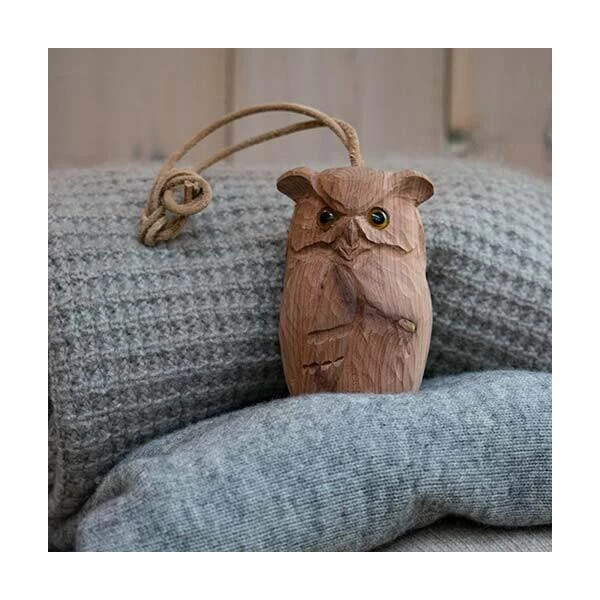 De Wildlife Garden ceder Oehoe kijkt over je kleren en verspreidt een verfrissende geur in de kledingkast. In het uil-figuurtje zit een kleine container voor cederolie die ervoor zorgt dat de geur blijft en niet verdwijnt als het hout uitdroogt.