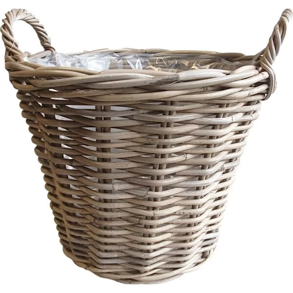 Mooie set van 3 in elkaar passende manden. Deze manden zijn voorzien van plastic folie en kunnen dus worden gebruikt als binnen- en buitenpot.
