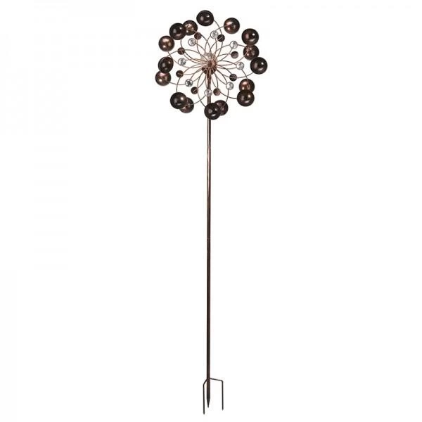 Je kan de windspinner met de voorziene prikker eenvoudig in de grond prikken. Het geheel is vervaardigd uit metaal en voorzien van een koperkleurige tint.